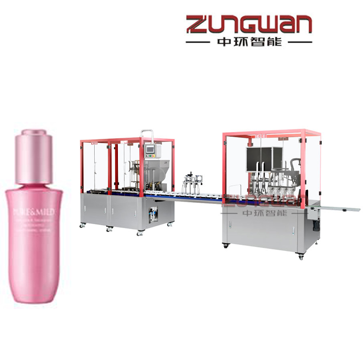 ZHSR-4C直線式水乳膏霜灌裝旋蓋一體機貼標生產線