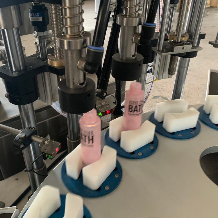 機(jī)器特點(diǎn):湖州水乳膏灌裝旋蓋機(jī),包括帶有灌裝接頭的灌裝機(jī)構(gòu)、灌裝流水線以及沿灌