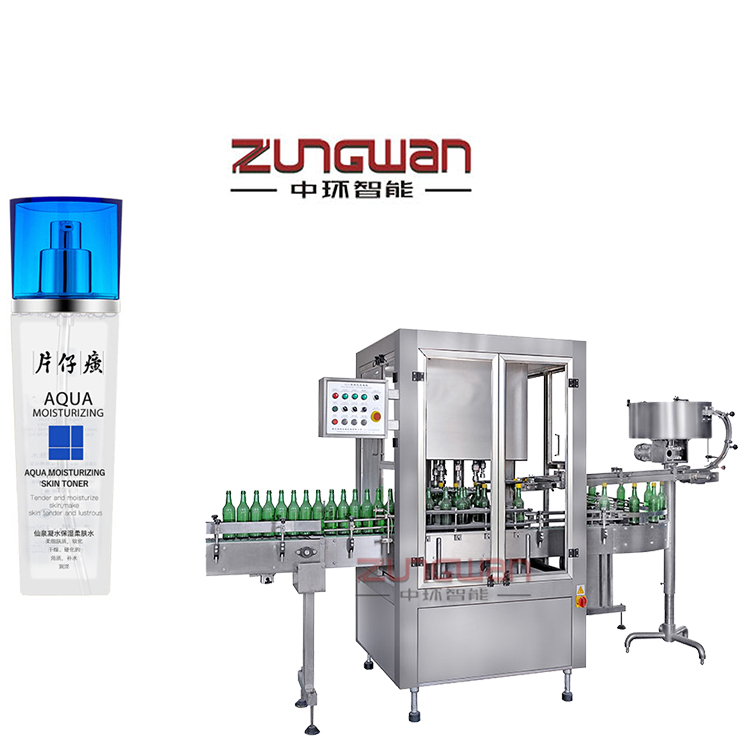生產(chǎn)線工藝流程包括:人工放瓶、空氣洗瓶、伺服電機(jī)夾帶分瓶、跟蹤式灌裝機(jī)、跟蹤式旋蓋機(jī)、夾瓶輸送帶、底部噴碼、貼標(biāo)機(jī)等工藝流程。本機(jī)適用于液體和膏體物料產(chǎn)品,如:白酒、紅酒、飲料、洗衣液、洗發(fā)水、卸妝水、化妝水、機(jī)油、潤(rùn)滑油、BB霜、隔離霜等。