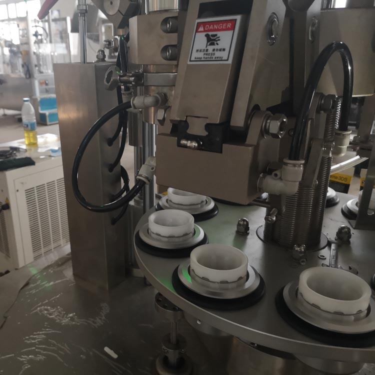 該灌裝封尾機(jī)采用(西門子、臺達(dá))觸摸屏和PLC控制,自動上管、自動定位以及進(jìn)口快速的加熱器和高穩(wěn)定流量計形成的熱風(fēng)加熱系統(tǒng),具有封口牢固可靠,包裝速度快,不損傷封合部外表,封尾外形美觀,整齊。該機(jī)可選配各種不同規(guī)格的灌裝頭及杯座,滿足不同粘度的灌裝量要求,并配有有機(jī)玻璃防塵罩。